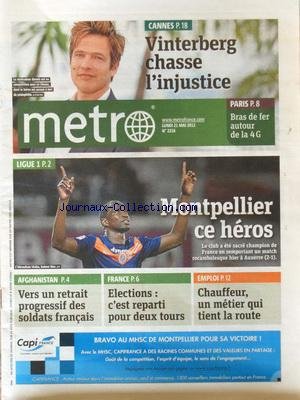 Read METRO [No 2216] du 21/05/2012 - CANNES - VINTERBERG CHASSE L'INJUSTICE - BRAS DE FER AUTOUR DE LA 4G - FOOT - LIGUE 1 - AFGHANISTAN - VERS UN RETRAIT PROGRESSIF DES SOLDATS FRANCAIS - ELECTIONS - C'EST REPARTI POUR 2 TOURS - CHAUFFEUR - UN METIER QUI TIENT LA ROUTE PDF